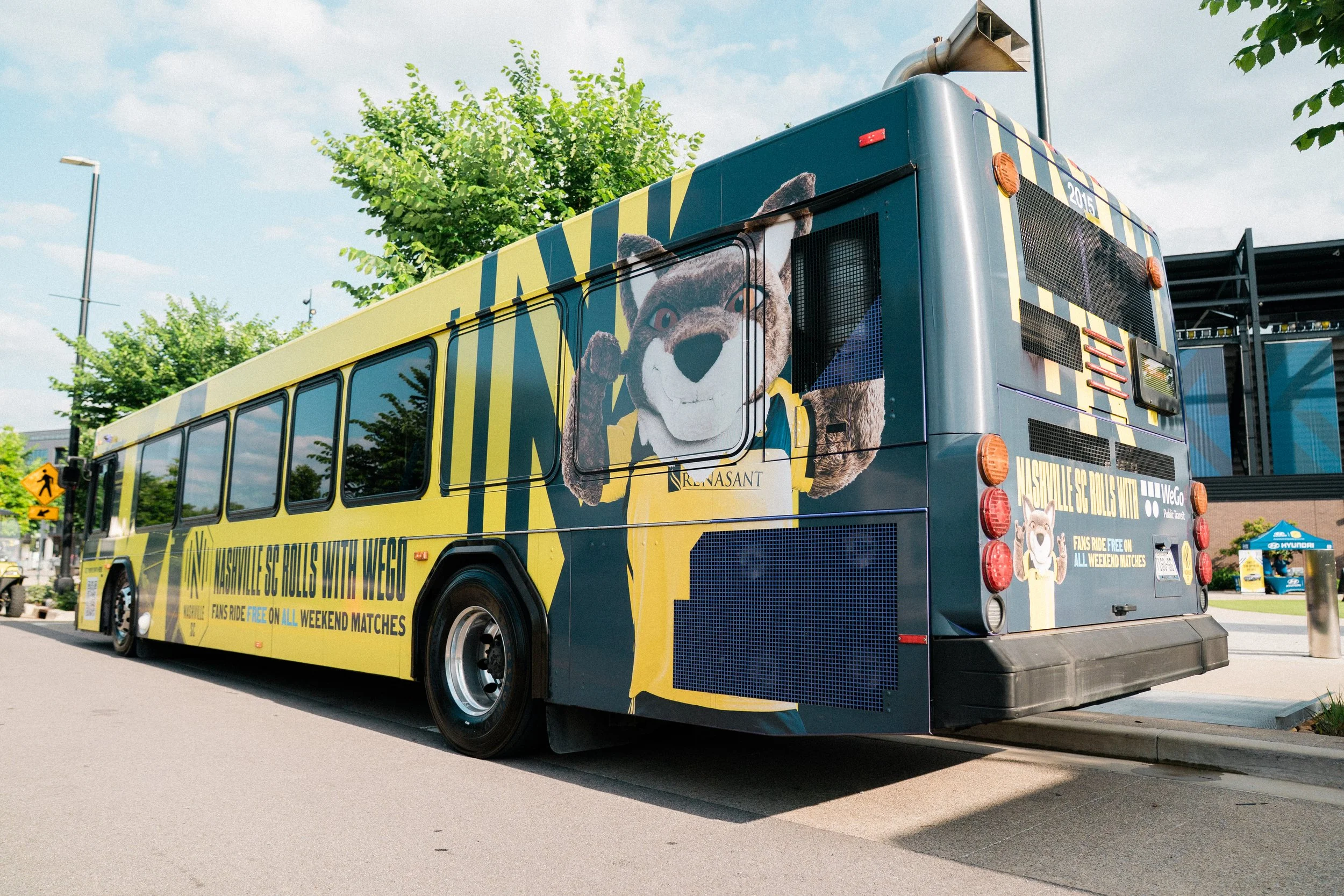 A wrap for a WeGo bus, Nashville’s public transit company, highlighting that fans can ride free on game days.